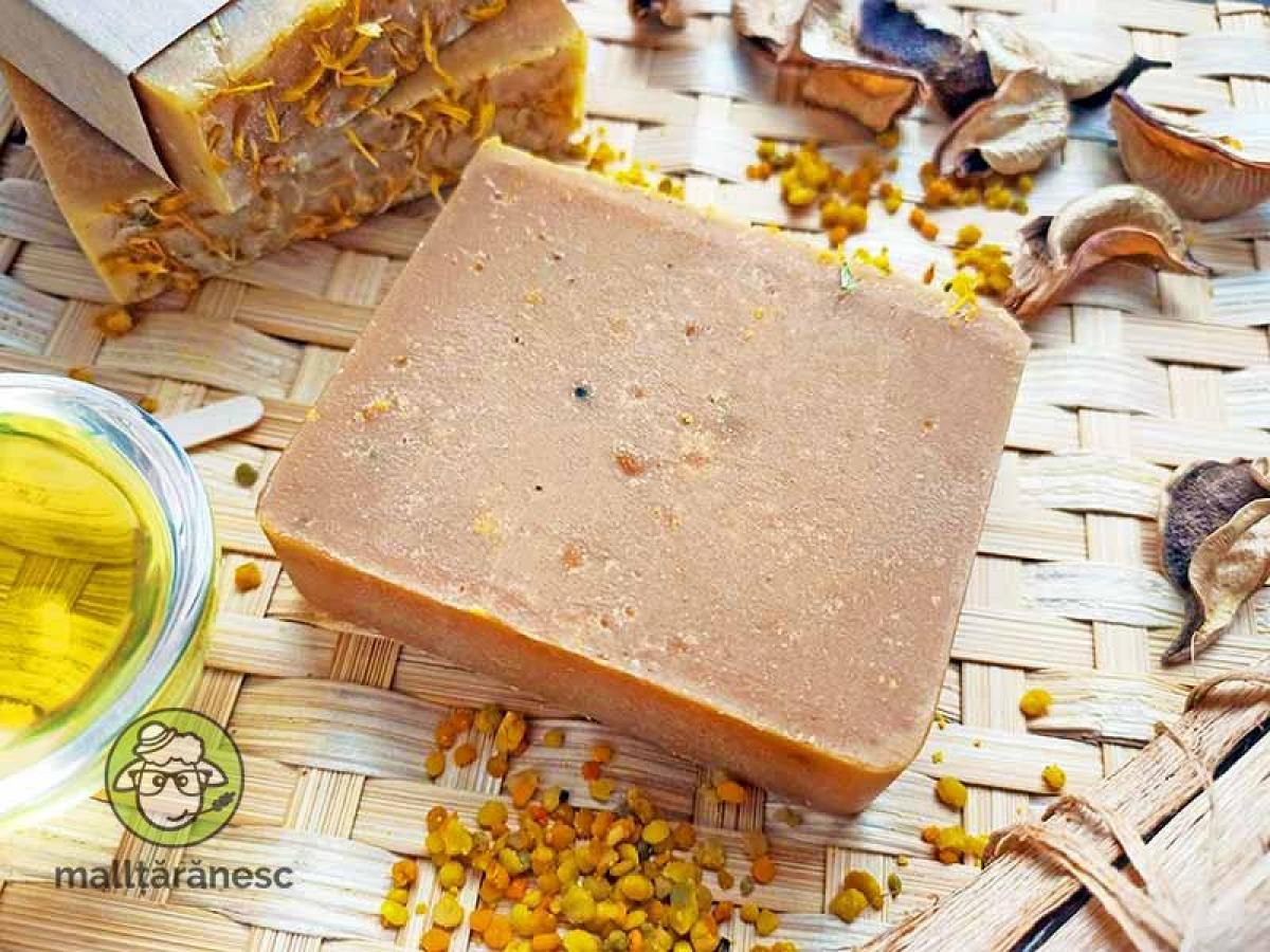Săpun Natural Miere și Polen cu Infuzie de Gălbenele – un săpun emolient, hidratant, potrivit pentru pielea uscată, sensibilă.