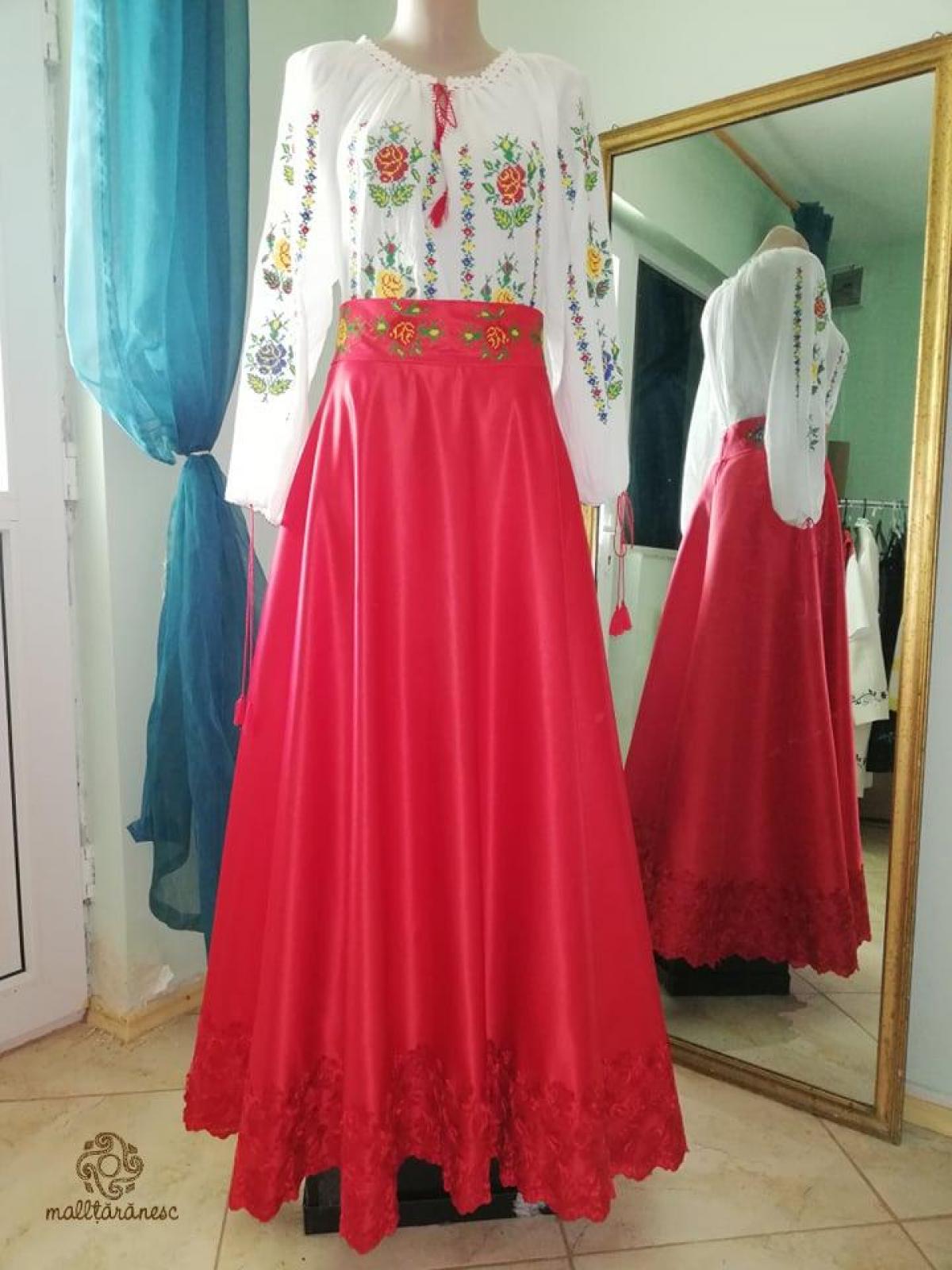 Ie dama lucrata manual pe panza topita bumbac 100 % si fusta din tafta cu betelie brodata. la comanda facem orice culoare si marime.