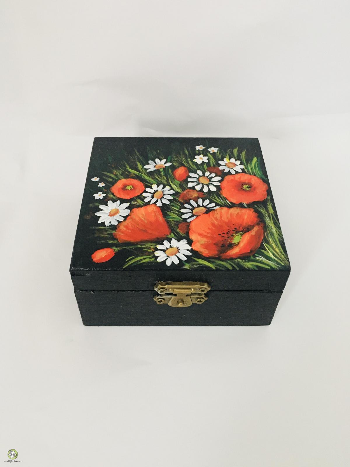 Cutie bijuterii din lemn pictata in culori acrilice si lacuita 10/10/5 cm