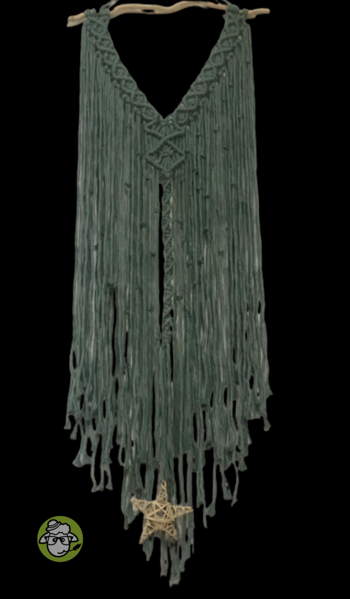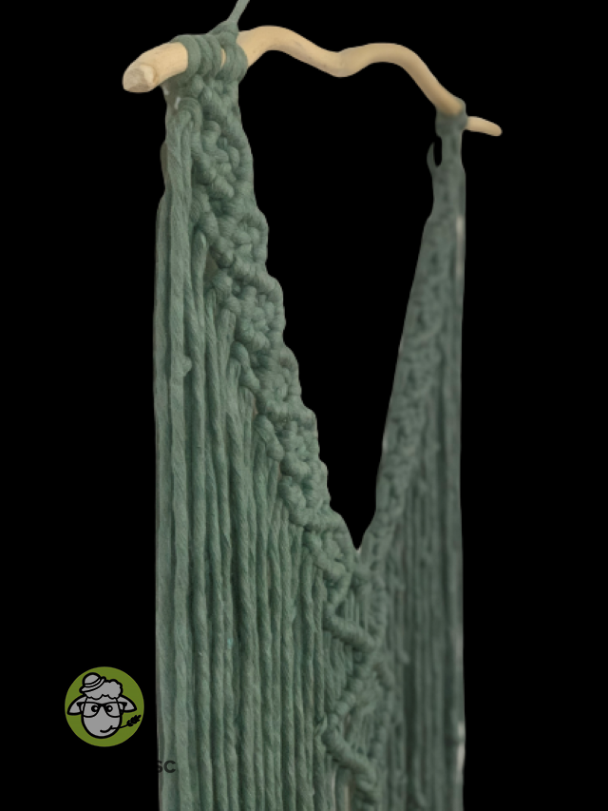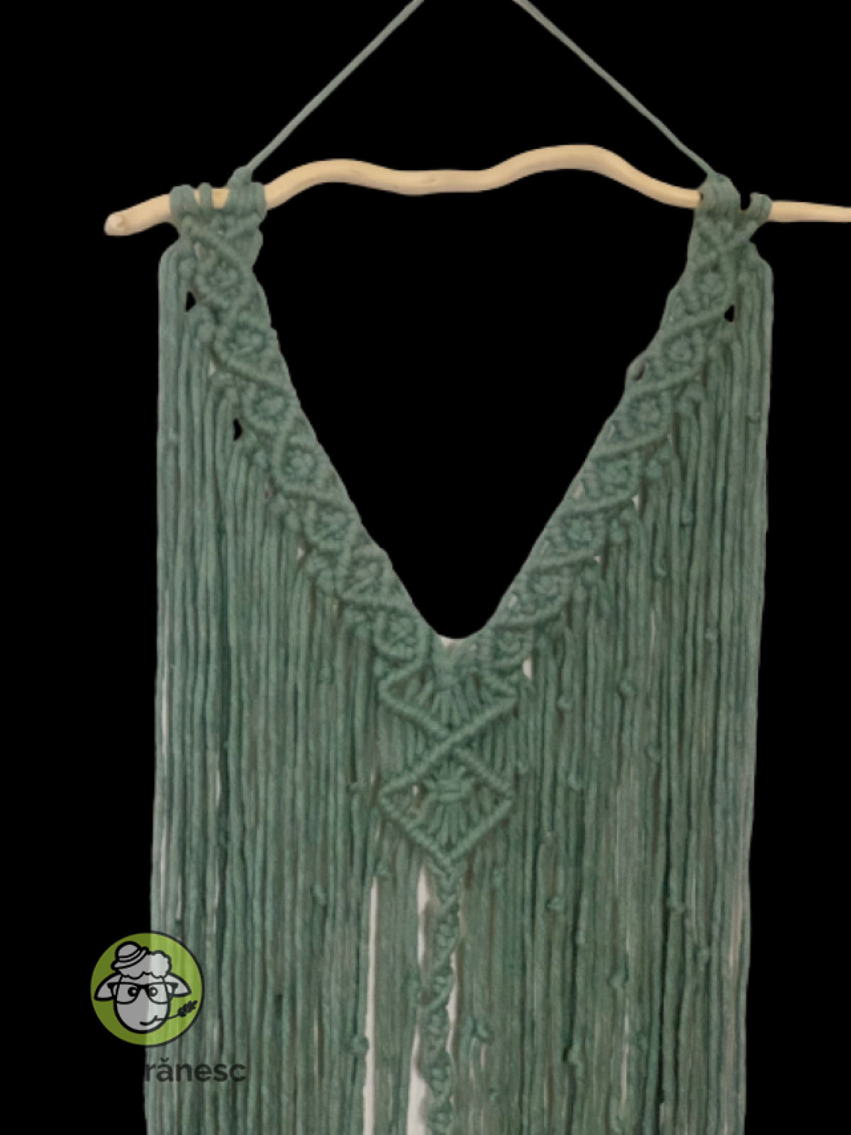 Decoratiune perete realizata din impletire tip macrame cu sfoara bumbac 5mm