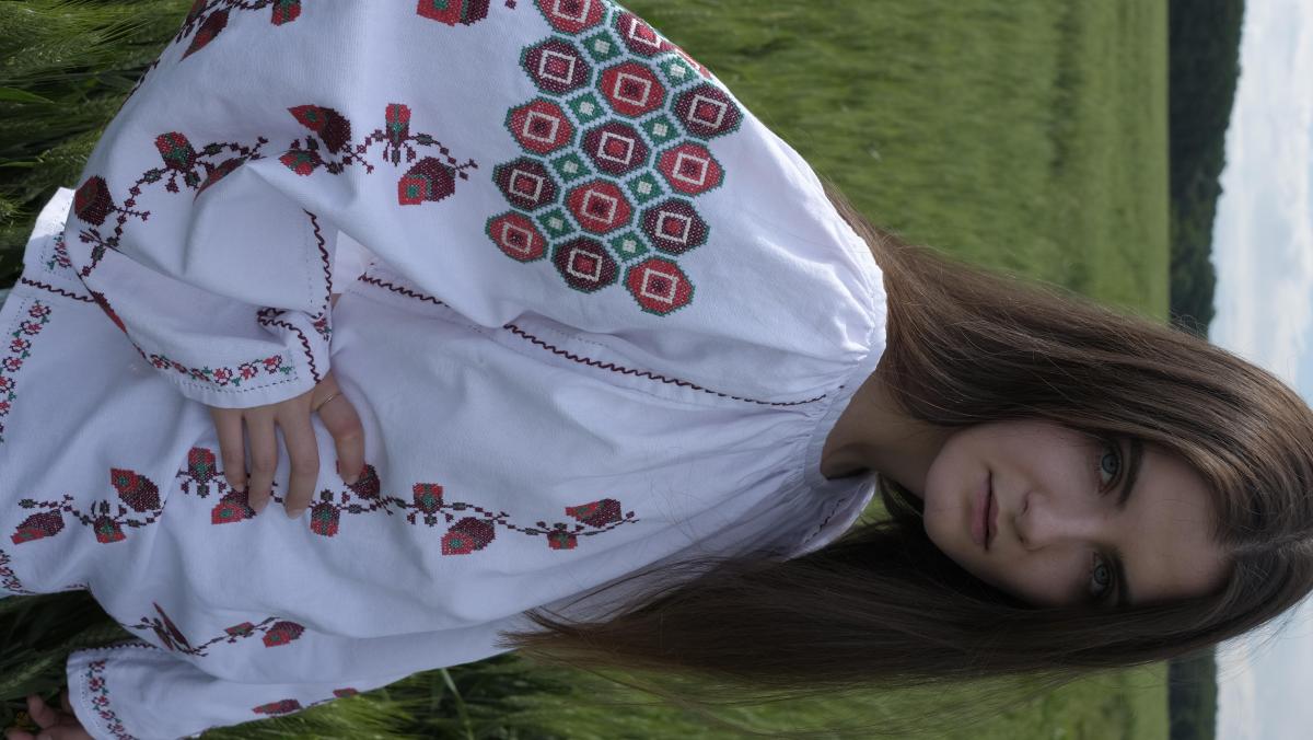 Ie cusută pe pânză de bumbac , cu motive tradiționale din Bărăgan