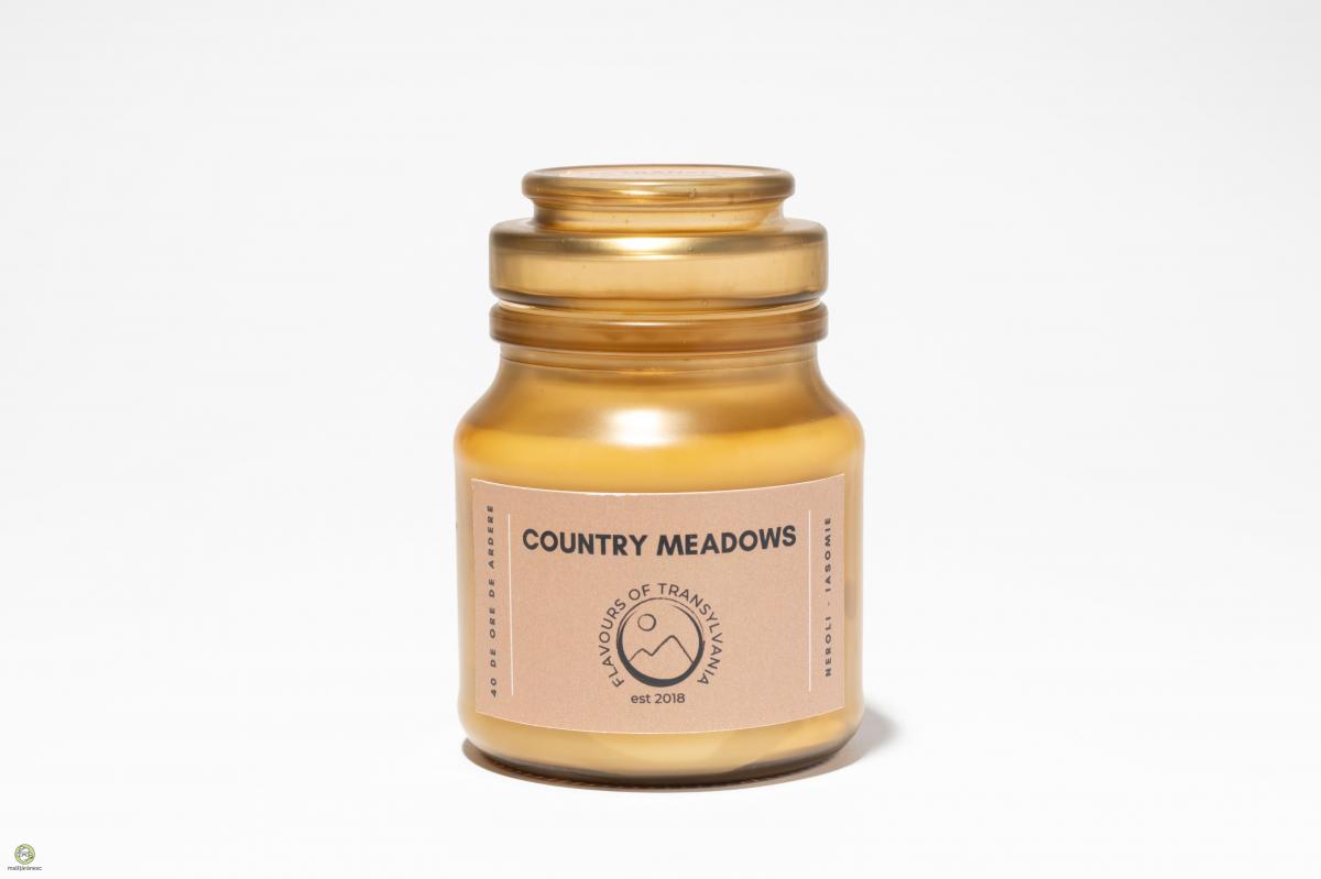 Inspirat de senzualitatea cearsafurilor albe proaspat spalate, imbinate cu moscuri vanilice si acorduri florale de iasomie, crin de lunca si neroli albi. “Country Meadows” este un parfum care inspira sentimente de seninatate si liniste, de aducere aminte a zilelor frumoase de vara petrecute in aer liber. Note de varf: Neroli albi, Iasomie Note de baza: Muschi, Chihlimbar, Vanilie. Timp mediu de ardere: 35-40 de ore Greutate: 140g de ceara si parfum, ~ 340g greutate totala