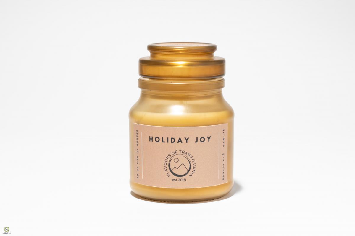 Suntem de parere ca ,,Holiday Joy” rimeaza cu ,,simt miros de zapada”, replica rostita de Lorelai din celebrul show “Fetele Gilmore”. Craciun intr-un borcan, acest parfum delicios cuprinde o inima calda si picanta de scortisoara, nucsoara si cuisoare, topindu-se ca zapada intr-o baza de vanilie calda. Aminteste de zilele de Craciun petrecute acasa cu familia, urmarind focul arzand in semineu, in timp ce savurati o cana ce ciocolata calda Note de varf: portocala, eucalipt Note de baza: Vanilie, Lemnos, Condimenta Timp mediu de ardere: 35-40 de ore Greutate: 140g de ceara si parfum, ~ 340g greutate totala