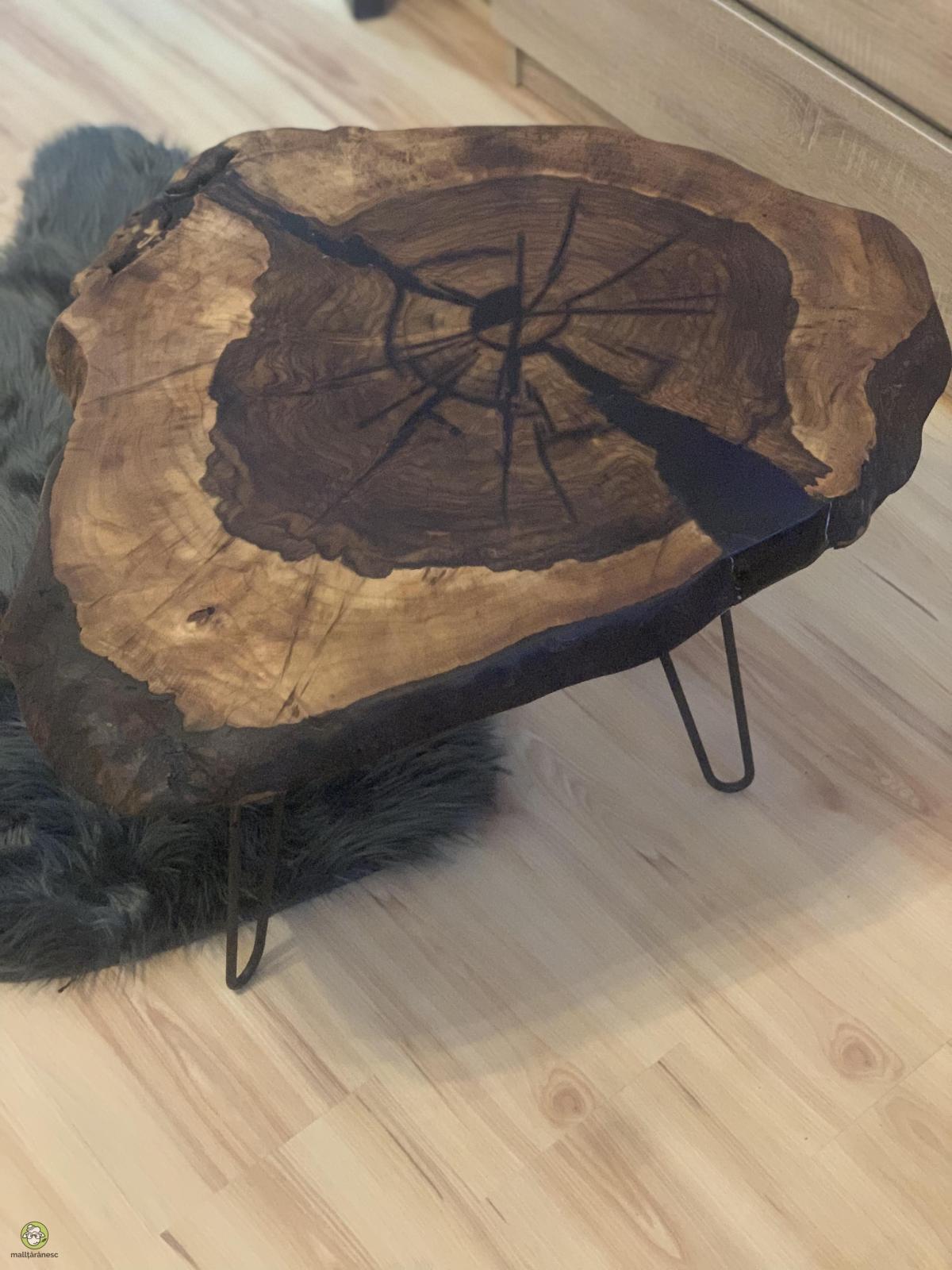 Masuta de cafea din lemn de nuc cu inserții de rășină epoxidica