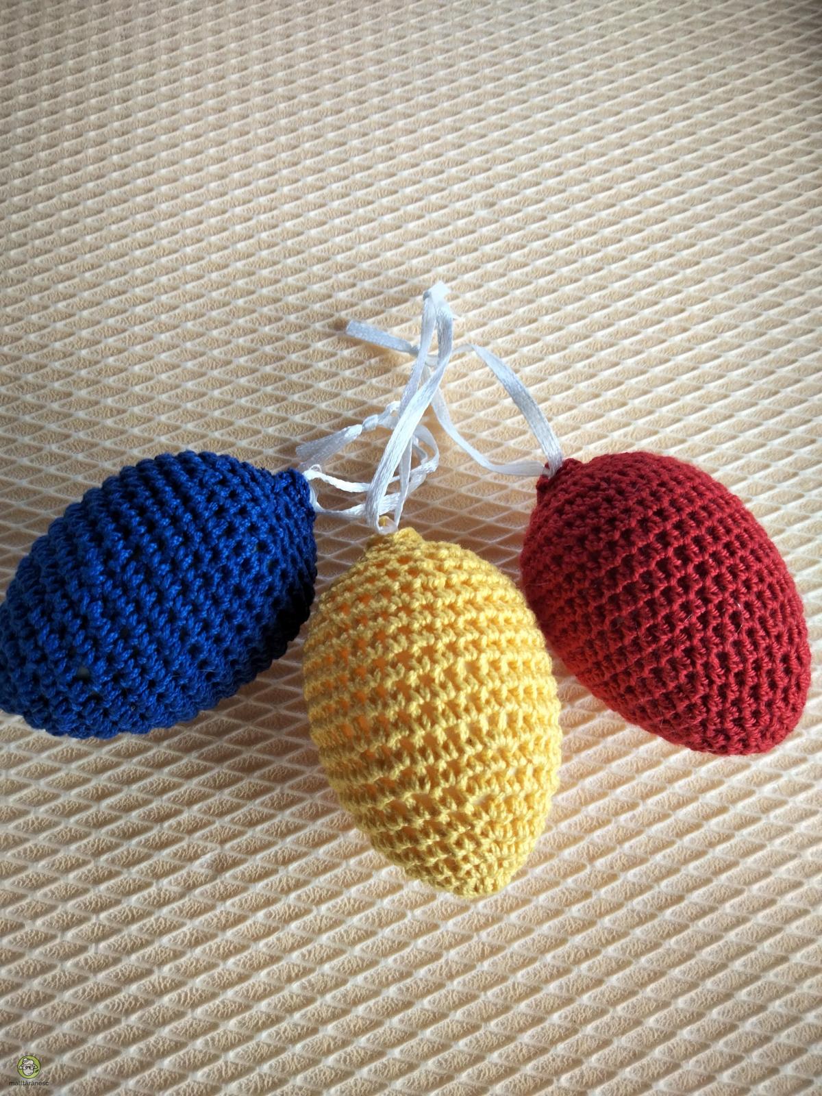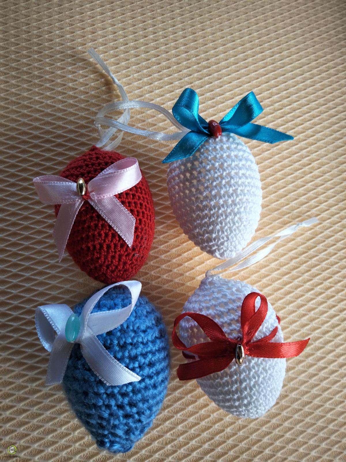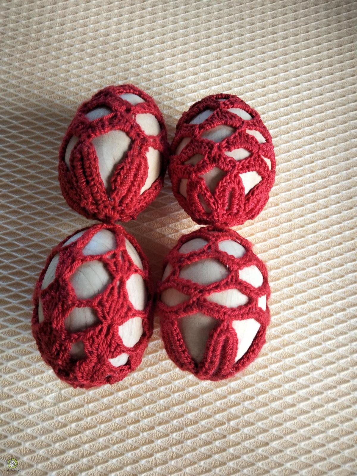 Oua decorative din lemn sau plastic, îmbrăcate manual din bumbac sau mătase.