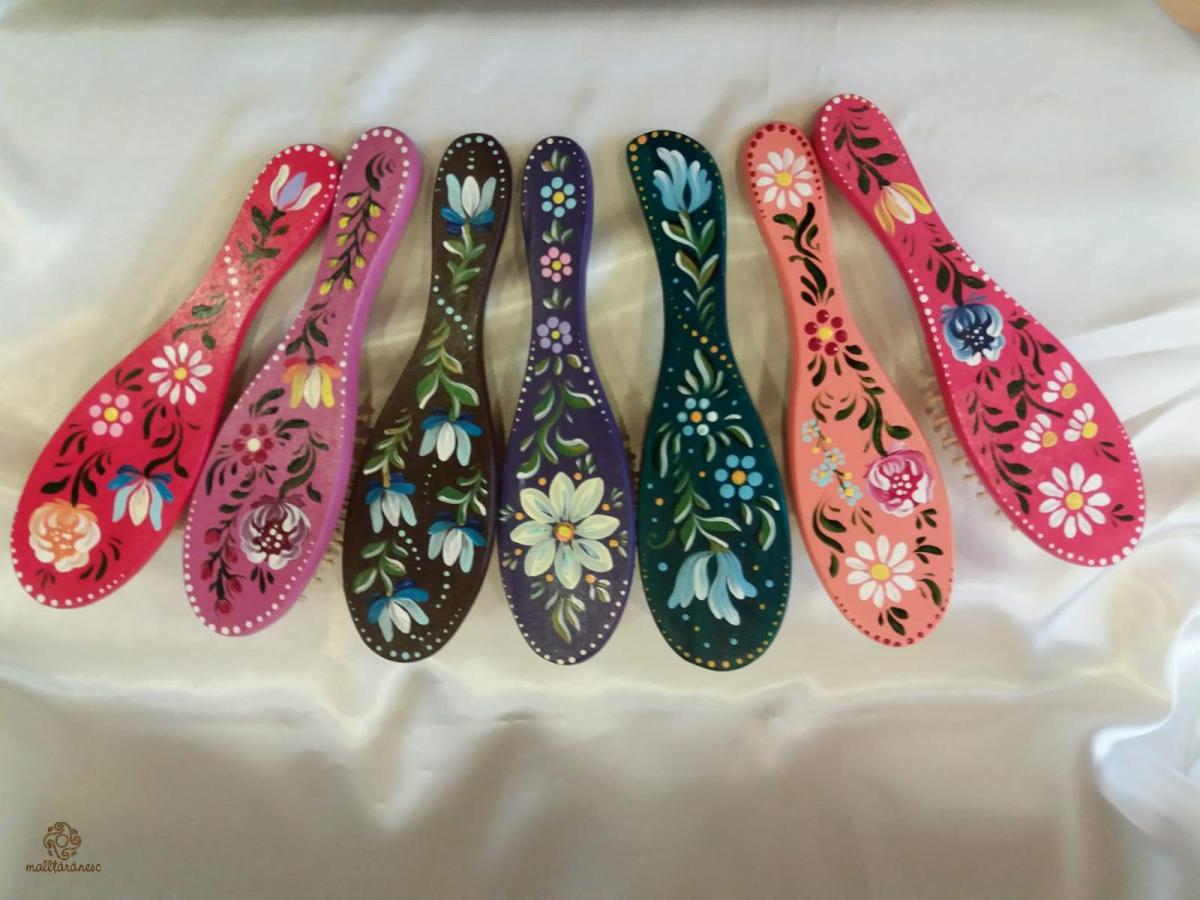 Perii din lemn, pictate în culori acrilice. Ele au lungimea de 21 cm.