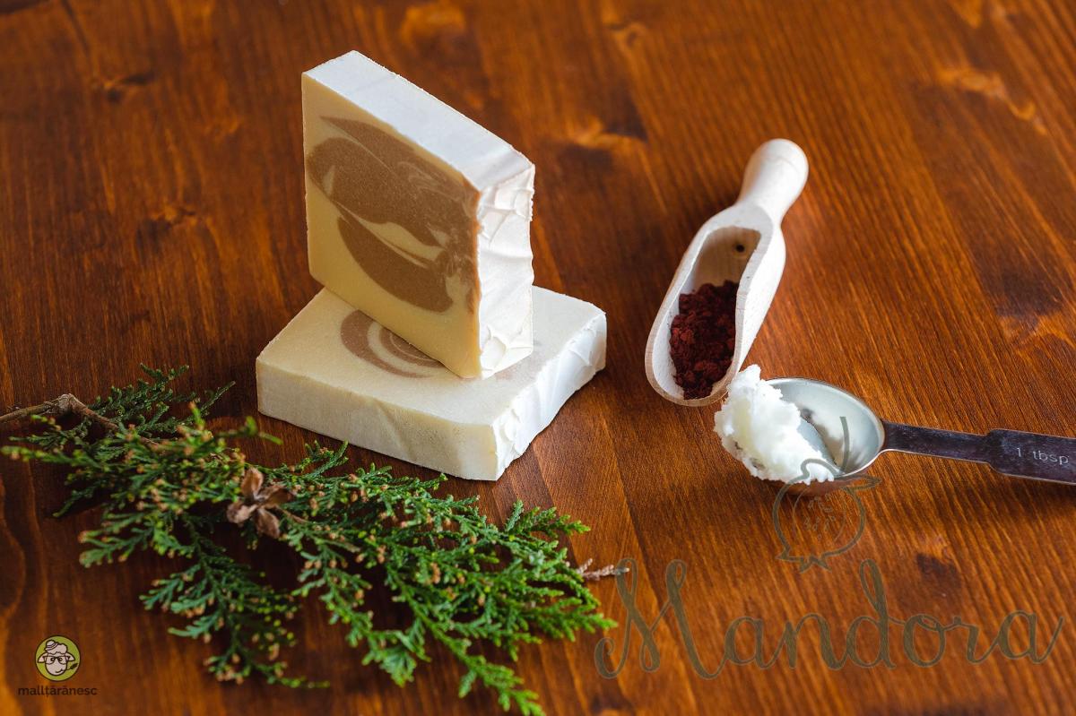 Încă din 2015, țesem rețete proprii în sufletul Șardului, județul Alba, și dedicăm celor care îndrăgesc ingredientele naturale și nutritive, cosmetice produse manual, cu pasiune și grijă. Uleiul esențial de Geranium, ce echilibrează întreaga componență a acestui săpun floral, păstrează nivelul optim de sebum, are acțiune astringentă și este un deodorant natural pentru toate tipurile de piele. Gramajul săpunului este de 100 g +/-5 g, variație dată de procesul de tăiere manuală și maturare (prin care se elimină apa, săpunul solid devenind mai ușor). Produs notificat U.E. ingrediente: apă de trandafiri, unt de avocado, unt de cocos, ulei extra-virgin de măsline, ulei esențial de geranium, argilă verde.