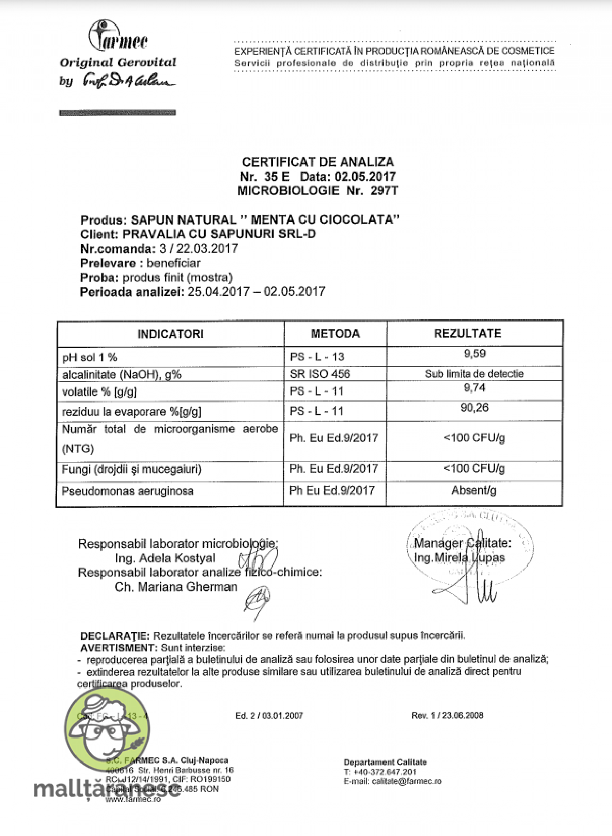 Sapunul "Fresh" cu menta si ciocolata conţine o cantitate mare de antioxidanţi care au rolul de a proteja pielea de efectele nocive ale mediului (radicali liberi, praf, poluare etc.) şi are puternice efecte anti-îmbătrânire. Utilizare: fata, maini, corp Recomandări: ten mixt/gras, acneic Cantitate: 100g±5g ℮ Realizat manual prin metoda la rece! Ingrediente (INCI): OLEA EUROPAEA FRUIT OIL, AQUA, COCOS NUCIFERA OIL, SODIUM HYDROXIDE, HELIANTHUS ANNUUS HYBRID OIL, RICINUS COMMUNIS SEED OIL, THEOBROMA CACAO SEED BUTTER, MENTHA PIPERITA OIL, MENTHA PIPERITA LEAF, POGOSTEMON CABLIN LEAF OIL, ARGILLA EXTRACT, THEOBROMA CACAO SEED POWDER, LIMONENE Referinta CPNP: 2860372 Notificat 06.11.2018