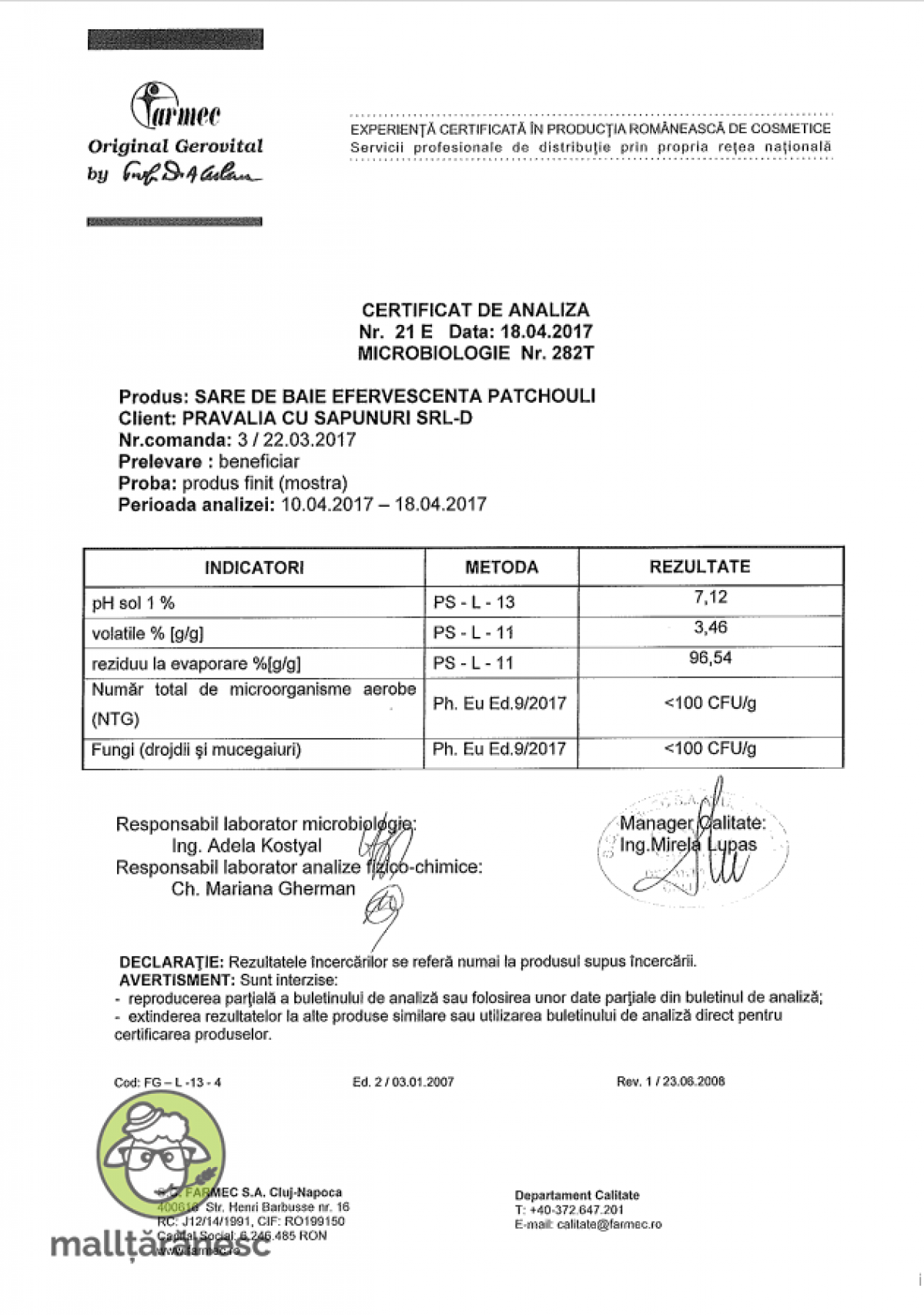 Sare de baie efervescenta cu Patchouli. Ingredientele din această sare de baie au fost alese pentru proprietăţile lor de hidratare și catifelare. Au rol de îndepărtare a celulelor moarte, de calmare şi relaxare a pielii. Descriere Sare de baie efervescentă cu Patchouli: Bogată în minerale și oligoelemente, argila verde este ideală pentru remineralizarea și decongestionarea pielii. Ajută la eliminarea excesului de sebum și a impurităților datorită puterii sale absorbante excelente. Este potrivită în special pentru tenul mixt sau gras. Sarea marină este recunoscută încă din timpuri străvechi pentru proprietățile sale curative și de înfrumusețare. Aceasta este bogată în minerale de care corpul și pielea noastră au nevoie pentru a rămâne tinere și sănătoase. Uleiul de migdale dulci conţine din belşug vitaminele E şi D, minerale esenţiale (magneziu şi calciu), pentru un efect puternic emolient, ce-l recomandă în tratarea pielii uscate, crăpate, iritate sau afectate de mâncărimi. Se absoarbe foarte bine în piele. Bicarbonatul de sodiu neutralizează acizii de pe piele. Uleiul esențial pur de patchouli este o esență foarte apreciată pentru parfumul său puternic și profund, cu note pământii, lemnoase. Acesta conține o serie de principii active cu rol antiinflamator, antiinfecțios, decongestionant venos, regenerator cutanat și cicatrizant. După o asemenea baie nu va fi nevoie să aplicaţi loţiune de corp, pielea va fi moale, mătăsoasă, cu un apect natural, îngrijit. Ingrediente Sare de baie efervescenta cu Patchouli (INCI): SODIUM BICARBONATE, CITRIC ACID, SODIUM CHLORIDE, PRUNUS AMYGDALUS DULCIS OIL, TOCOPHERYL ACETATE, ARGILLA EXTRACT, POGOSTEMON CABLIN LEAF OIL, ROSA DAMASCENA FLOWER. Referinta CPNP: 2860667. Notificat la data: 06.11.2018