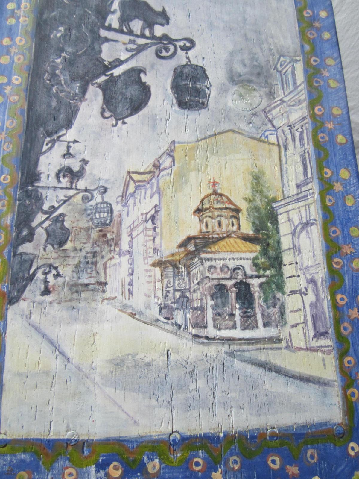 Biserica Stavropoleos văzută dinspre Caru' cu bere. Pictură: Oana Popa
