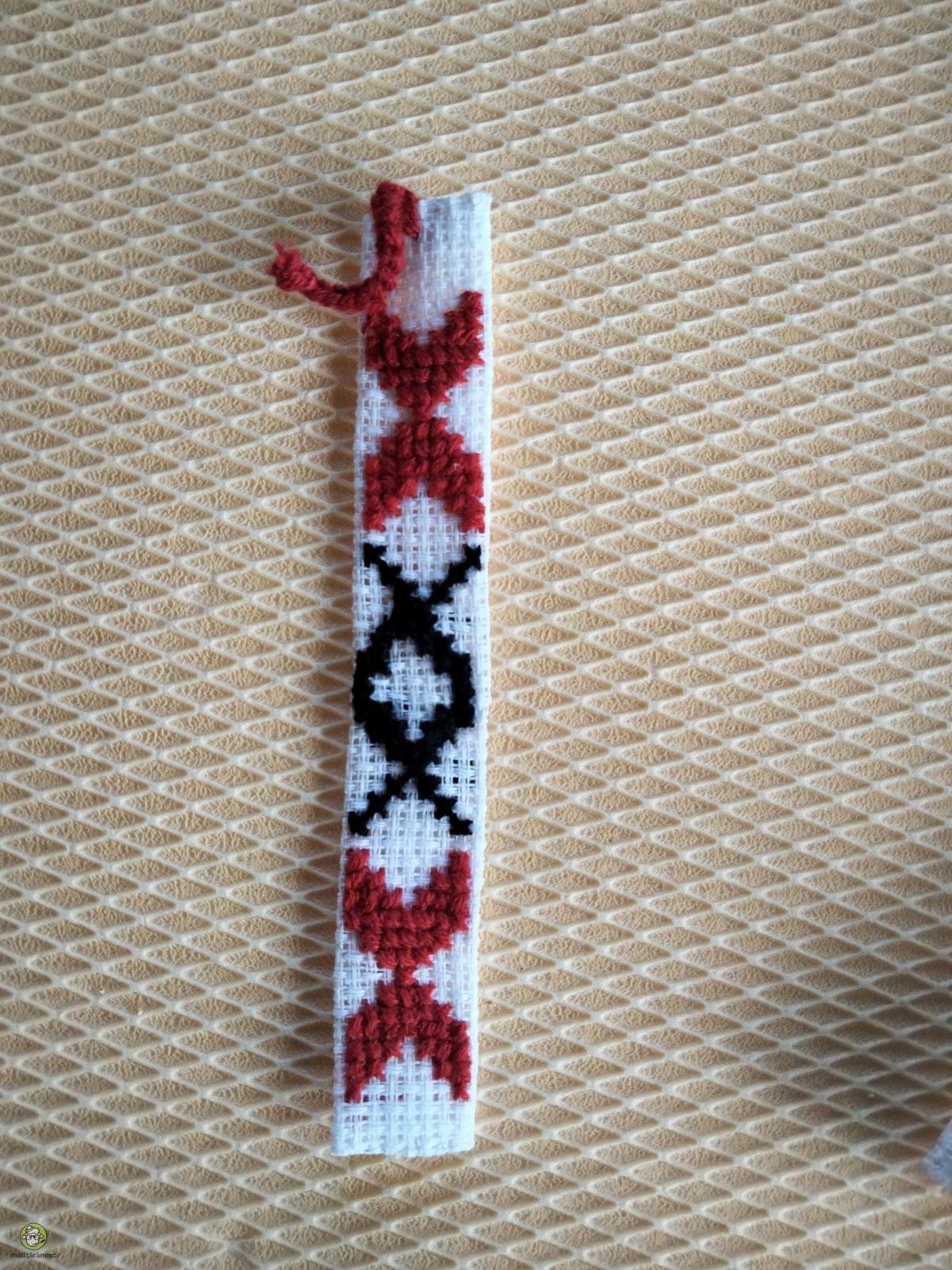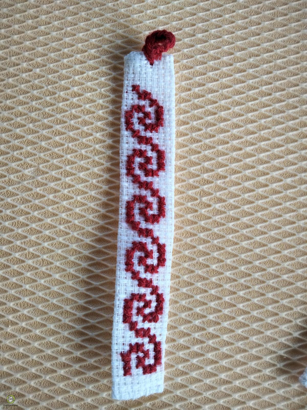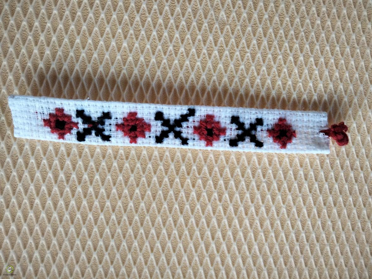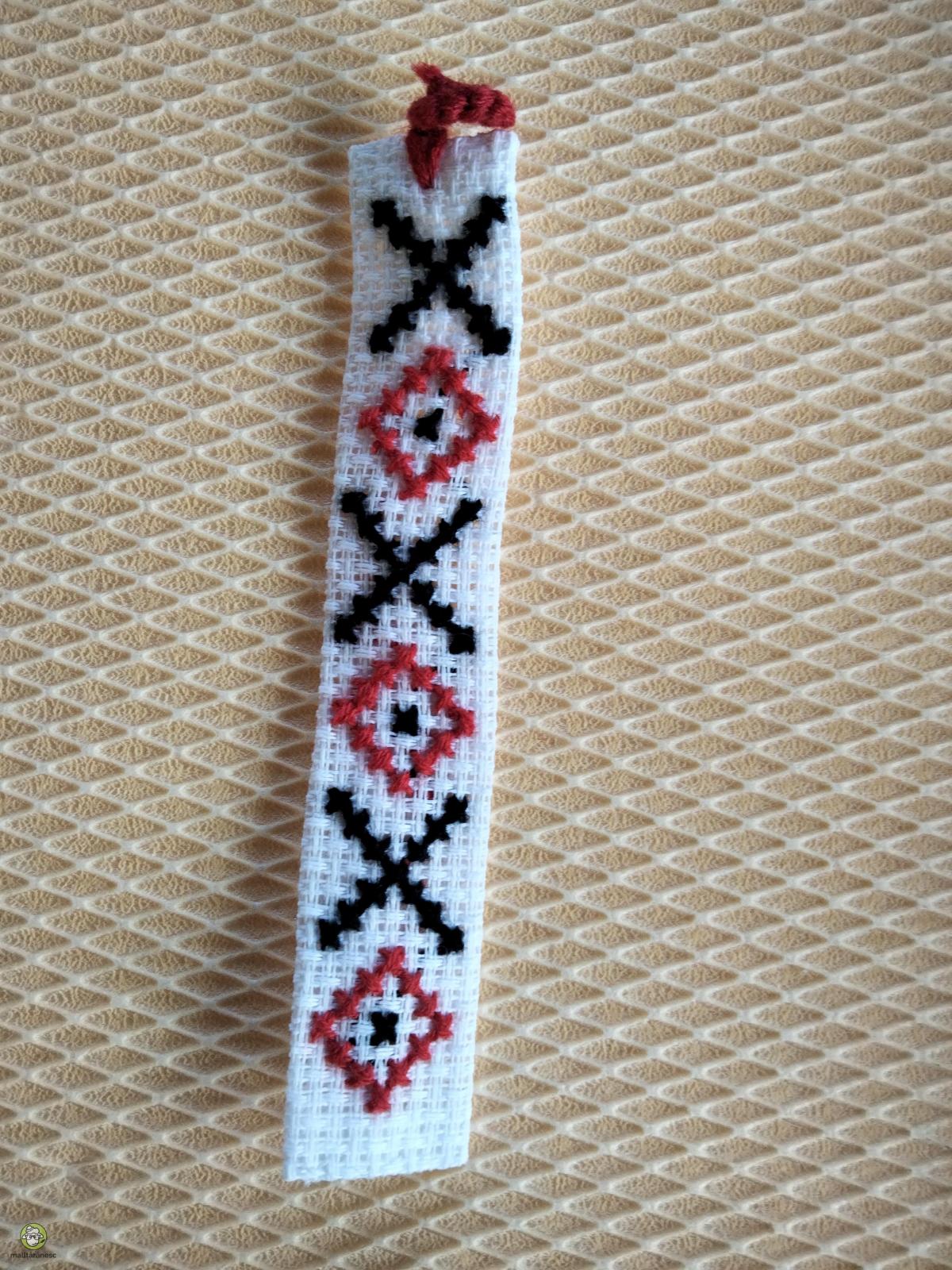 Semne de carte cusute manual, pe etamina cu motive traditionale