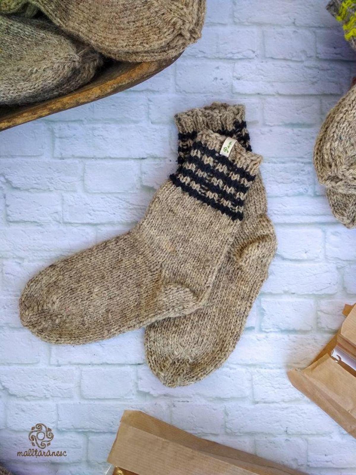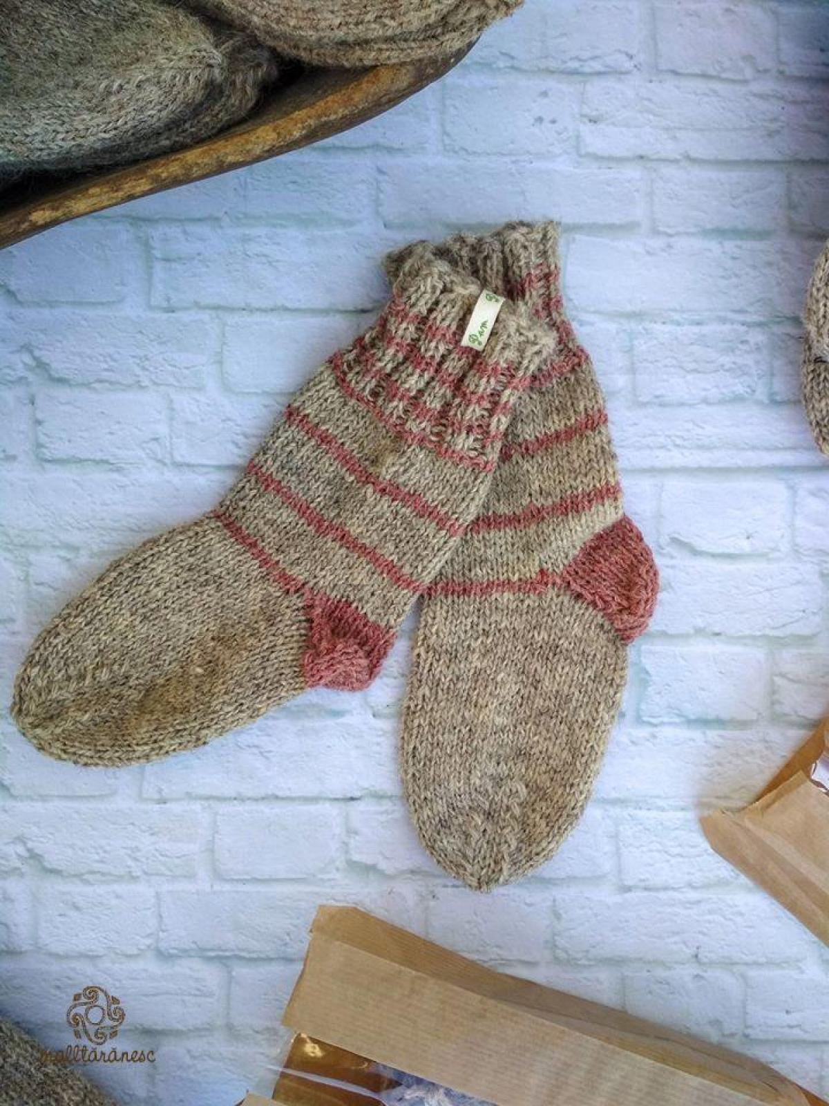 Șosete tricotate manual, din lână, mărime adult, 35-37.