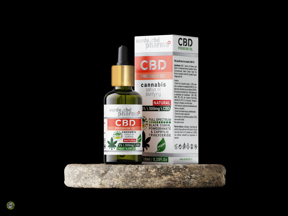 Help+ 5% de la Verde® CBD Pharma, reprezinta un extract din canepa autentic care este purtat de chimenul negru, organic, biodinamic care ofera o biodisponibilitate crescuta. Un concentrat de ulei din plante intregi, continand fitocanabinoizi naturali esentiali organismului. Aceasta tinctura concentrata ofera cantitati standardizate cu cei mai importanti compusi si fitocanabinoizi. Produsele Verde CBD Pharma au o concentratie semnificativa de fitocanabinoizi – CBD, CBG, CBN, CBC, CBL, terpene, flavonoide, vitamina B1, B2, C, E, acizi grasi – Omega-3, Omega-5, Omega-6, etc., toate acestea oferind un efect tonic, revitalizant, complet. Totodata, continutul de acid octanoic, cunoscut si sub denumirea de “hrana a creierului”, ofera revitalizare generala cu efect antistres si un plus de memorie si concentrare. Mai mult, aditivarea produsului cu extract din chimen negru (Nigella Sativa) de cea mai buna calitate, are un continut ridicat de antioxidanti, in special, uleiul este bogat in timochinona, care are efecte antioxidante si antiinflamatoare puternice. Ca rezultat, studiile sugereaza ca acest compus poate proteja sanatatea creierului si cresterea de absorbtie a tuturor canabinoizilor prezenti in produs. In plus, extractul din rodie, ofera efect regenerant si de anti-imbatranire. Beneficiati de un somn mai calitativ si mai putina anxietate, de o recuperare imbunatatita post-antrenament si castig a masei musculare atunci cand va antrenati. De asemenea, promoveaza productia de colagen in corpul dumneavoastra, o proteina vitala care joaca un rol important in a va oferi o piele si muschi tonifiati. Cu o utilizare regulata, uleiul CBD ofera corpului capacitati de autoregenerare si intretinere, oferindu-va in acelasi timp puterea pentru antrenament sustinut sau competitii sportive. Conceptul Verde CBD Pharma va permite sa va bucurati oriunde si oricand de toate beneficiile canabinoizilor si a tuturor suplimentelor purtatoare deoarece nu contin THC.
